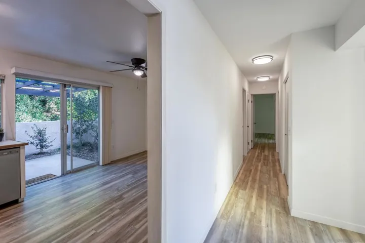 Live in the best location at the popular, Seven Oaks 55 plus community in Rancho Bernardo. You will enjoy living in this single level, peaceful, quiet cul-de-sac location, all surrounded by full grown landscaping. This home shares only one wall with a neighbor and is ready for you to personalize for quick building of equity. The home offers a great location, size, floor plan, and layout. The vaulted ceilings in this extra large, 1,372 sq ft, two bedroom/two bath add a sense of spaciousness, while bringing good light into the home. The fireplace adds a stylish touch of romance to the oversized living room. The large, open eat-in kitchen includes energy star, stainless steel appliances. The kitchen window overlooks the garden patio, while the patio entrance makes for easy al fresco dining. The primary bedroom includes two closets and an ensuite bathroom. A full size washer/dryer is included, just off the hall bathroom. Recent updates include a newer HVAC and appealing light fixtures. One assigned, carport and large, private storage are immediately outside the front door of your home. There is ample guest parking in the parking lot as well as on the street. Conveniently located rear Sprouts and Vons with easy access to shopping in Carmel Mountain Ranch, and the I-15 freeway. Seven Oaks 55+ community offers an active lifestyle with a heated pool, gym, pickleball, clubs, library, woodshop and more with membership. Anyone can own an age restricted home, but one occupant must be at least 55 years old in 80% of the units.