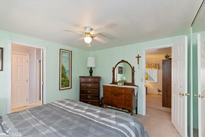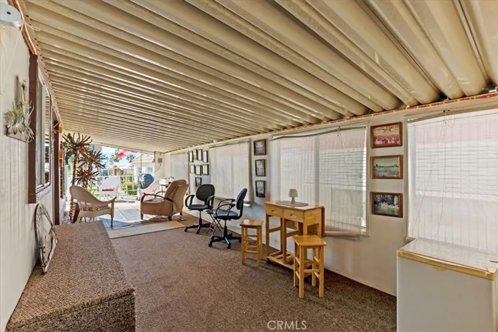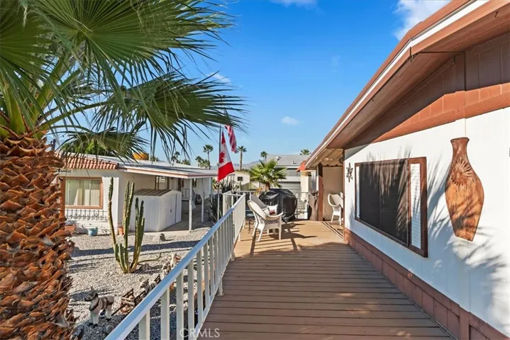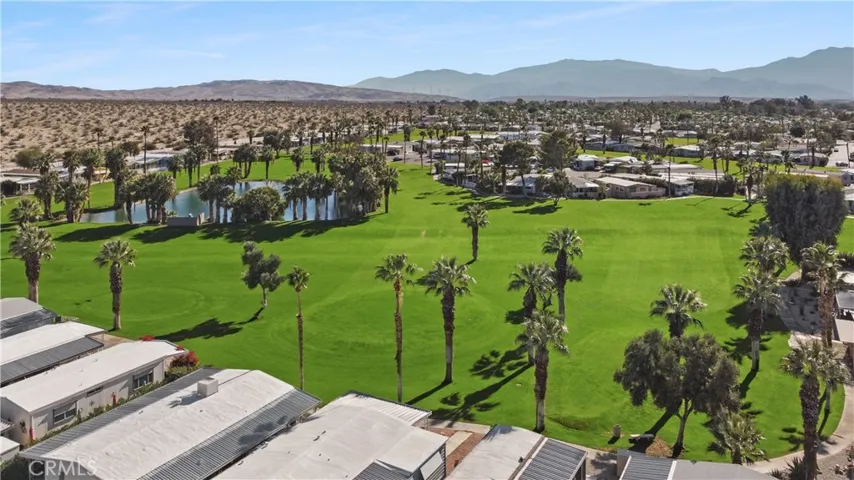 Experience resort-style living in this beautifully cared-for 1440 sq. ft., 2-bedroom, 2-bath home, offered turnkey furnished, and perfectly positioned on a highly desirable golf course lot in the gated 55+ community of Hidden Springs Country Club. With sweeping golf and mountain views, this home offers one of the best locations in the entire park. Outdoor living is where this property truly stands out. A private covered side patio/sunroom provides year-round enjoyment and extra usable space, while the elevated back deck overlooks the lush golf course fairways and mature palms—perfect for morning coffee, sunset views, or simply enjoying the serenity of the setting. With no homes directly behind you, the privacy and scenery are exceptional. Inside, the spacious layout features two full living areas—a bright, open formal living room and a separate family room off the kitchen—providing exceptional flexibility for entertaining, relaxing, hobbies, or media use. A dedicated dining room with a built-in hutch adds charm and functionality, while the light and bright kitchen offers plenty of counter space, a gas range, and a comfortable breakfast bar. The full laundry room with extra cabinetry provides valuable additional storage. The oversized primary bedroom suite easily accommodates a full furniture set and includes an ensuite bathroom. The guest bedroom and second full bath are conveniently located for visitors or use as an office or craft room. All of this plus ample parking on both sides of the unit with a storage room/garage that can accommodate a golf cart. Throughout the home, large windows bring in natural light and showcase the surrounding views. Additional features include low-maintenance desert landscaping, covered parking, and onsite storage. Hidden Springs Country Club offers an array of amenities including an executive golf course, pool and spa, clubhouse, fitness center, and a full social activity calendar—all surrounded by panoramic mountain views. Buyer to verify all property details, space rent, and community requirements, and to conduct all due diligence This is a rare opportunity to own a spacious, turnkey furnished home on one of the community’s most scenic golf course lots, offering comfort, views, and an unbeatable lifestyle in Desert Hot Springs.