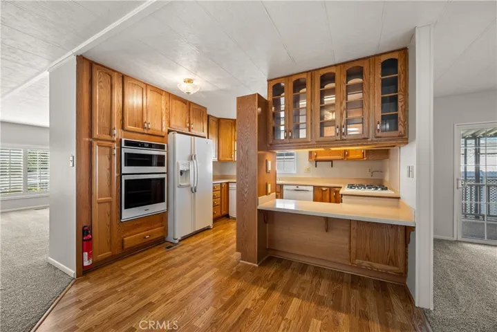 An exceptional opportunity awaits with this spacious 2-bedroom, 2-bathroom manufactured home with a huge bonus room, ideally located in a sought-after Arroyo Grande community. Situated on an approximate 1,736 sq ft lot, this property delivers generous living space and a prime chance for personalization. The bright interior features an open floor plan with expansive living areas, including a sizable living room and a separate family room. Both spaces are finished with neutral paint, plush carpeting, and are illuminated by large windows fitted with classic shutters, ensuring a cheerful and inviting atmosphere. The well-appointed kitchen is defined by classic wood cabinetry offering significant storage, and it flows seamlessly into the dedicated dining area, which boasts an attractive built-in hutch with glass display frontsperfect for entertaining. The two bedrooms are roomy and comfortable. The primary suite features elegant gold-framed mirrored closet doors and a private en-suite bathroom with a classic enclosed shower. The second full bathroom is equally functional, offering extended vanity space and cabinet storage. The bonus room could be used as a bedroom since it has an oversized closet. The homes exterior is complemented by beautiful landscaping, a paver-stone walkway, and steps leading up to a covered, sheltered porch ideal for enjoying the mild climate. Convenient covered carport parking is also included. Combining location, size, and potential – this home is ready for its next chapter … as your new home!