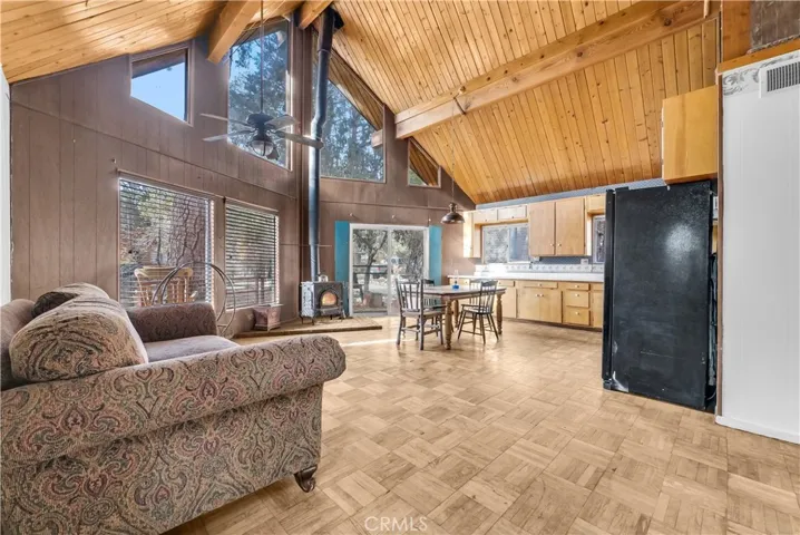 Nestled in the quiet, wooded streets of Big Bear City, this 3-bedroom 1-bath residence evokes the charm of mid-century mountain living. The house reflects a vintage alpine cabin aesthetic – ideal for a year-round home, vacation getaway, or a peaceful retreat in the mountains.