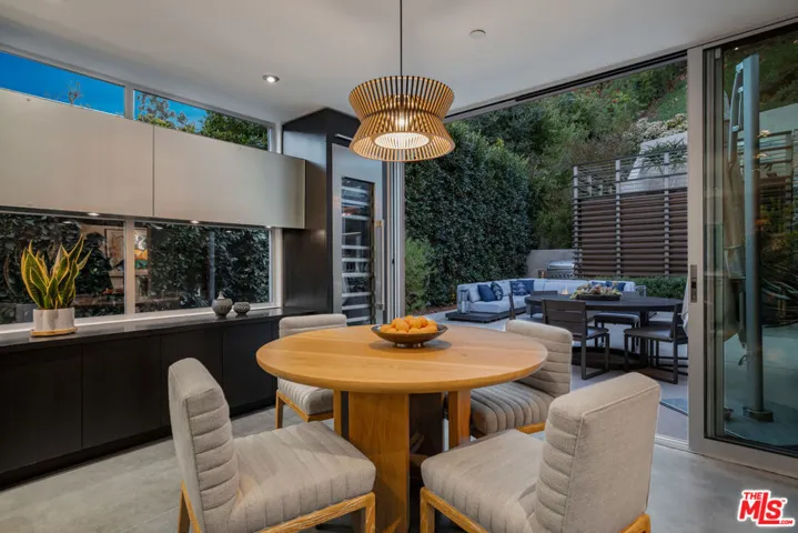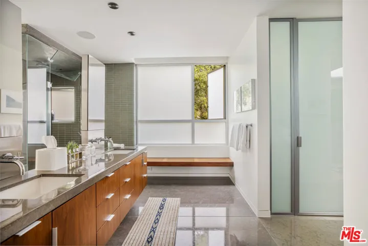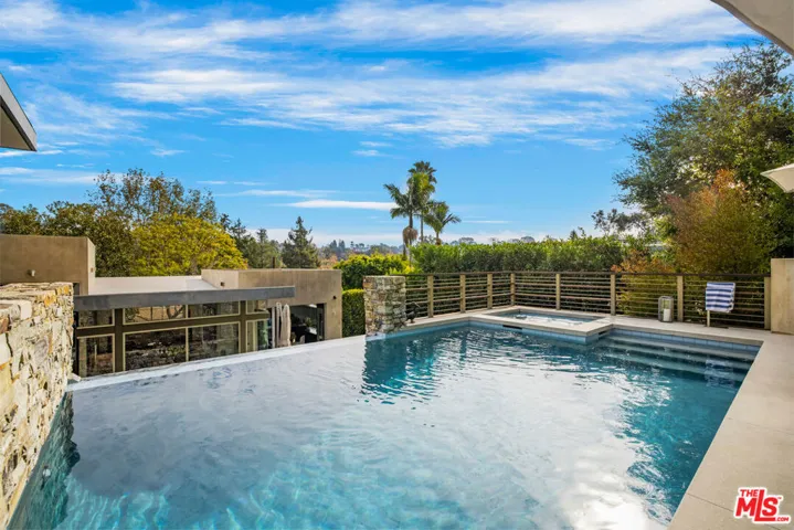 Tucked into a serene cul-de-sac in the heart of coveted Rustic Canyon, this striking custom residence offers a rare blend of architectural distinction, refined luxury, and profound privacy – just moments from the very best of the Westside. Designed by renowned architect Michael Kovac, the home is a masterclass in thoughtful craftsmanship and modern elegance, surrounded by lush canyon greenery and tranquil treetop views. Soaring ceilings, expansive walls of glass, and effortless indoor-outdoor flow fill the interiors with natural light and a calming sense of openness. Rich hardwood floors bring warmth throughout, while polished concrete surfaces and the sleek Boffi kitchen introduce a refined contemporary edge. A state-of-the-art smart home automation system and an alkaline drinking water system provide seamless modern convenience and wellness-forward living. The primary suite is a true private sanctuary perched atop the home, complete with a sitting lounge, office loft, spa-caliber bath with steam shower and soaking tub, dual walk-in closets, and a secluded terrace overlooking the canyon canopy. Four additional bedrooms offer exceptional flexibility for family, guests, or creative use. Outdoors, a resort-like retreat awaits: a dramatic infinity-edge pool and spa, cascading water feature, private decks, and serene lounging areas create an exceptional environment for both entertaining and quiet reflection. Exterior furniture is available as shown in the photos, and six smart TVs are included with internet service, offering a beautifully curated, fully connected, move-in-ready experience. A spacious three-car garage provides ample parking, valuable extra storage, and a defined workout area. Set within one of the most peaceful and prestigious neighborhoods on the Westside, this extraordinary home is moments from top-tier private and public schools – including the highly regarded Canyon Elementary School District – along with Santa Monica shopping, the Palisades Village (anticipated to reopen in early 2026), Rustic Canyon Park, and Will Rogers State Park, now open and ready to enjoy. This rare architectural retreat will be available for lease beginning in February, offering a limited opportunity to experience Rustic Canyon living at its most refined – an inspired, tranquil escape in an unbeatable location.