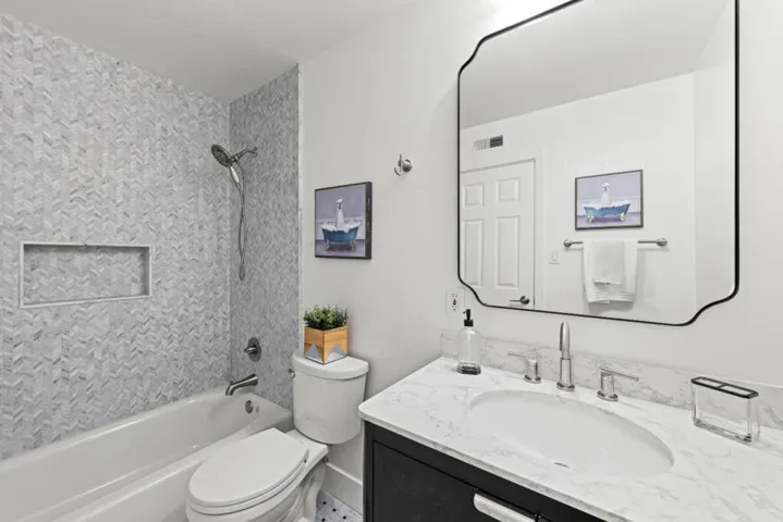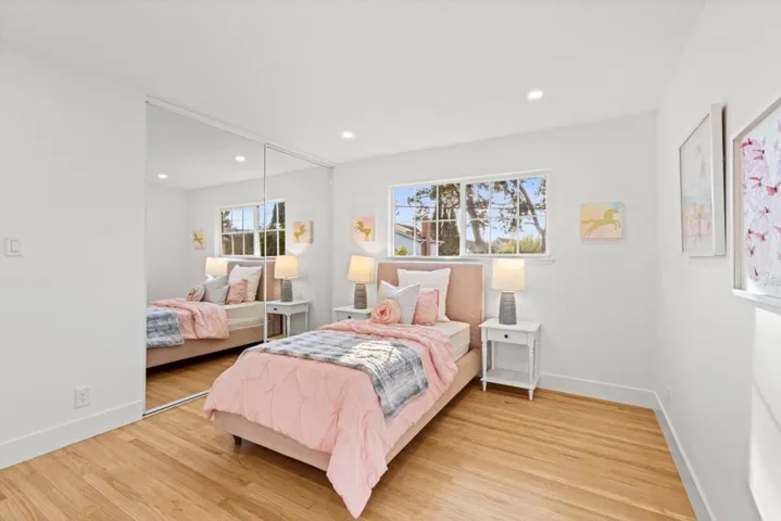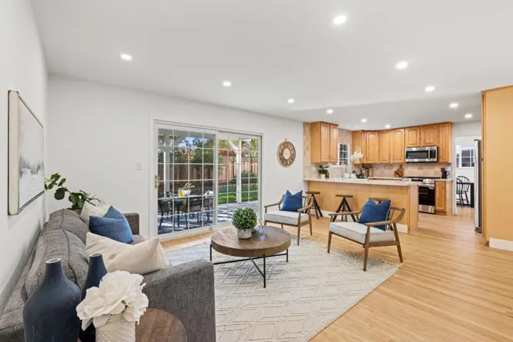Discover refined living in the heart of the distinguished Doerr Park neighborhood, where Willow Glen meets Cambrian Park. This elegant sanctuary at 1688 Grizilo Drive offers 2,191 square feet of meticulously remodeled space. The residence boasts five bedrooms, including a versatile downstairs bedroom, and 2.5 bathrooms, with potential to expand the large half bath into a full bathroom. The main living areas are adorned with water-based, non-toxic zero VOC red oak floors, complemented by recessed lighting and the soft glow of a gas starter wood-burning fireplace. Modern comforts abound, with dual-pane windows inviting natural light throughout. A culinary delight, the kitchen is equipped with a gas range, quartz countertops, and stainless steel appliances set against a backdrop of a stylish tile backsplash and maple cabinetry. The expansive private outdoor space features a covered patio, ideal for al fresco dining and relaxation. Outdoors, automated sprinklers and drip systems nurture the landscaped front and backyards. Enjoy the proximity to the scenic nine-acre Doerr Park, offering fields, playgrounds, and tennis courts. Welcome to an exquisite home that promises tranquility and sophistication.