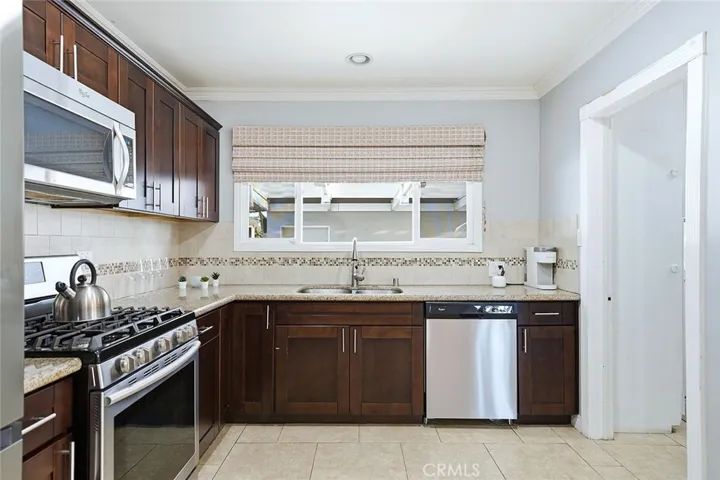 Welcome to 8606 Bright Ave! A beautifully updated 3 Bedroom, 1 Bathroom home perfectly situated on a desirable corner lot at the end of a peaceful cul-de-sac in Whittier! This turnkey home features a spacious open layout that maximizes every inch of its footprint, complemented by modern upgrades throughout, including laminate wood flooring, recessed lighting, newer windows, crown molding, and Central AC/heat. The updated kitchen offers granite countertops, rich dark wood cabinetry, and a stylish tile backsplash. The remodeled bathroom features a contemporary tile shower and quartz countertop vanity. A full laundry room adds maximum convenience. The backyard is a fantastic highlight and a fantastic size measuring 6,021 Sqft, featuring an attached covered patio, a detached covered gazebo ideal for outdoor dining, BBQ or lounging, and a lower gated section perfect for a children’s play area or pet space. Additional features include a gated storage area with a newer cement slab ready for a shed, lush green landscaping, and a 2-car garage with an additional storage room attached. This home truly has it all! Located in a quiet, family friendly neighborhood with excellent schools, and just minutes from the wonderful shopping and dining of Uptown Whittier and The Quad! Take advantage of this opportunity and make this amazing home yours today!