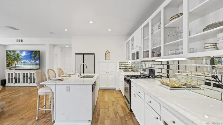 Welcome to this beautifully updated 3-bedroom, 2.5-bath townhome located in the heart of Eastlake, one of Chula Vista’s most desirable and well-planned communities. From the moment you step inside, you’ll notice the attention to detail—modern luxury laminate flooring flows throughout the home, offering a clean aesthetic and effortless, low-maintenance living. The inviting open-concept kitchen is designed for everyday convenience and connection, featuring refreshed cabinetry, upgraded LED under-cabinet lighting, and sleek modern appliances. Whether you’re cooking, hosting, or simply enjoying a quiet evening, this space blends warmth and usability seamlessly. The interior has been freshly painted, and the attached two-car garage provides additional overhead storage, enhancing the home’s move-in-ready appeal. Loved for its smart layout, this floor plan is one of the most sought-after in the community—offering great natural flow, well-sized rooms, and a comfortable separation of living and sleeping spaces. Step outside to your private, generously sized patio, perfect for dining al fresco, relaxing after a long day, or entertaining friends and family year-round. Residents enjoy a lifestyle of convenience and leisure with access to resort-style community amenities, including a large pool, spa, and children’s play area. Parks, shops, schools, and dining options are all just moments away. Don’t miss the chance to own this beautifully maintained Otay Lakes townhome—a standout opportunity in an unbeatable location.