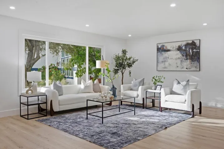 Set in a prime Sunnyvale neighborhood, this thoughtfully upgraded 4-bed, 2-bath home perfectly balances modern style with comfortable living. An airy, open layout connects the living, dining, and kitchen spaces filled with natural light and highlighted by recessed lighting and an elegant electric fireplace. The kitchen is a showstopper with quartz countertops and backsplash, a sleek island under statement lighting, stainless steel appliances, a wine cooler, and soft-close cabinetry. Both bathrooms feel fresh and refined, featuring LED mirrors and designer details. The expansive outdoor space is ideal for gatherings or BBQ nights, complete with a gazebo, fire pit area, and swing set. Situated within the highly regarded Santa Clara Unified School District, near top parks like Ortega Park, and with easy access to major tech campuses. Get into your new home just in time for the holidays!