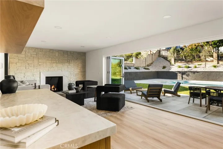 In the living room, wide bi-fold glass doors open seamlessly to the backyard, offering the indoor–outdoor lifestyle so many in Hacienda Heights love. Step outside to your own private retreat with a sparkling lap pool, cozy patio, and inviting firepit area. Thoughtfully designed landscaping and soft accent lighting add warmth and charm, making evenings here feel truly special.