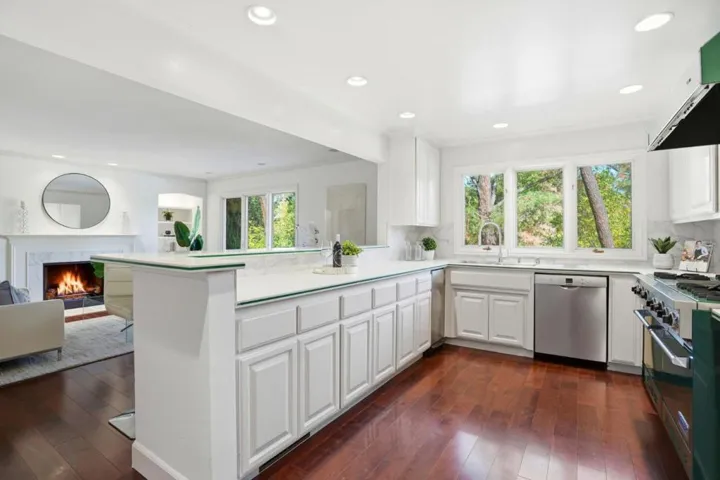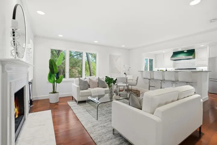Welcome to this stunning residence in Menlo Park, the sister neighborhood of prestigious Atherton. As one of the largest homes in the community by square footage, this property blends modern comfort with timeless elegance in a highly sought-after Peninsula location. Step inside to discover a spacious open layout with soaring floor-to-ceiling windows showcasing serene views of redwood trees surrounding the community. Designed for relaxation and entertaining, the home features an inviting living room with built-in shelves for ample storage and a separate family room adjacent to the dining area. The gourmet kitchen includes a 6-burner gas Viking range with a built-in oven, ample cabinetry, stainless steel appliances, and a breakfast bar perfect for casual dining. Additional highlights include a private built-in elevator, double-pane windows, a dedicated laundry room, and a two-car garage. Enjoy resort-style living steps away from the community pool and tranquil surroundings. Conveniently located near Trader Joe’s, Whole Foods, Stanford Shopping Center, Stanford University, and top-rated schools, this Menlo Park gem offers space, comfort, and an unbeatable location that you don’t want to miss out on.