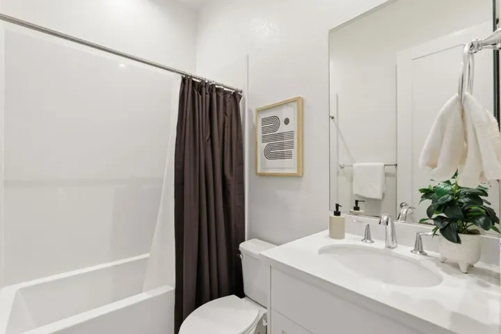 Contemporary elegance defines this immaculate 2-bedroom, 2.5-bath, 1,301 SF townhome built in 2019 by award-winning Trumark Homes. Ascend to the expansive main living area with soaring ceilings, gleaming oak floors, recessed lighting, and oversized windows that fill the home with natural light, magnificently designed. The chef’s kitchen showcases high-end appliances, beautifully contrasted quartz countertops, custom white cabinetry, a walk-in pantry, stylish backsplash, and an oversized island flowing seamlessly into spacious dining and living areas, perfect for entertaining or everyday elevated living. Each bedroom is a private retreat with luxuriously appointed en-suite baths and custom-shelved closets. The primary suite is a light-filled sanctuary with soaring ceilings, a spacious walk-in closet, and a double vanity spa-like bath. Added conveniences include entry level powder room, attached 1-car garage, temp-controlled RO filtration, water softener, central heating & AC, Ring doorbell, upgraded washer/dryer, and an exceptional location near vibrant downtown, San Pedro Square, beloved restaurants, SAP Center, Pellier and Bassett Parks, major tech campuses, Caltrain and highways 880, 87, 101, and 280. Experience modern luxury in one of SJ’s most desirable neighborhoods!