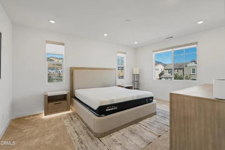 Welcome to Olive by Lennar Homes, nestled within the highly sought-after Harvest at Limoneira community! This recently built, modern four-bedroom home features an open-concept design highlighted by a stylish, contemporary kitchen and a warm, inviting living area–perfect for both everyday comfort and effortless entertaining. Ideally positioned on a premium corner lot, the property offers enhanced privacy and generous parking options.The well-designed floor plan includes a main-level bedroom with a full bath, an excellent option for guests, extended family, or flexible use. Upstairs, the spacious owner’s suite is complemented by two additional bedrooms–one featuring its own private en-suite bath–as well as a conveniently located laundry room.The low-maintenance backyard showcases attractive artificial turf and a clean concrete patio, offering a relaxing outdoor space with minimal upkeep. As part of this vibrant community, residents enjoy access to impressive amenities including sport parks, scenic walking trails, and the beautifully appointed ‘Farmhouse’ community center complete with a gym, pool, spa, and BBQ area.