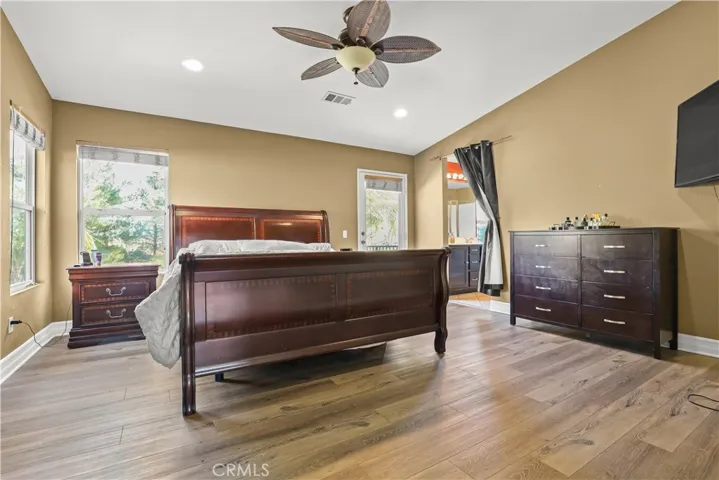 The first floor includes a full bathroom and a versatile bedroom ideal for guests, a home office, or multi-generational living. Upstairs, you’ll find four additional bedrooms, including a serene primary suite with vaulted ceilings, a private balcony, dual-sink vanity, soaking tub, step-in shower, and a spacious walk-in closet.