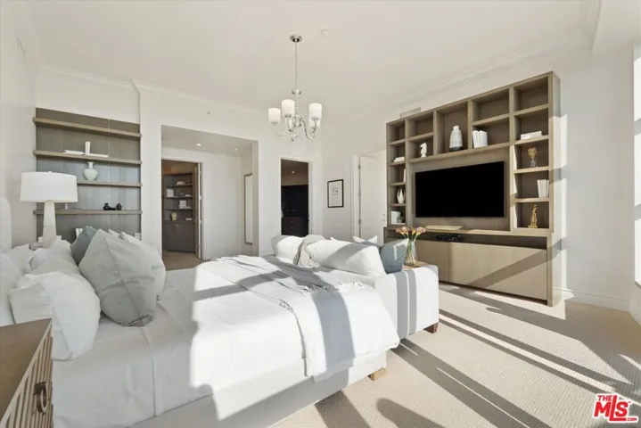 Unit 1904 at The Carlyle Residences is a coveted, 3,535 sq ft residence PLUS an additional 500+ sq ft housekeeping unit on the second floor and a valuable third parking space, making the total combined living space just over **4,000 square feet**. This additional, separate space features a convenient kitchenette and a full bathroom, perfect for staff quarters, a secondary office, or an additional guest room. The 19th floor residence offers 3 bedrooms / 3.5 bathrooms, and two balconies. The home provides unrivaled south-west exposure, showcasing cinematic views of the Pacific Ocean and the Los Angeles skyline; it also provides north facing views with a full display of The Getty and mountains. An exclusive, direct-access elevator opens into your private foyer. The interiors exhibit dramatic 11 ft ceiling height, hardwood floors, a fireplace, and a professional chef’s kitchen with premium Miele appliances. The serene primary retreat includes a spa-like, marble-clad primary bathroom, a dedicated private office, and an extra large closet. Residents enjoy 5-star white-glove service (24-hour Valet, Doorman, Concierge) and world-class amenities including a heated pool, designer fitness center, and private wine storage.