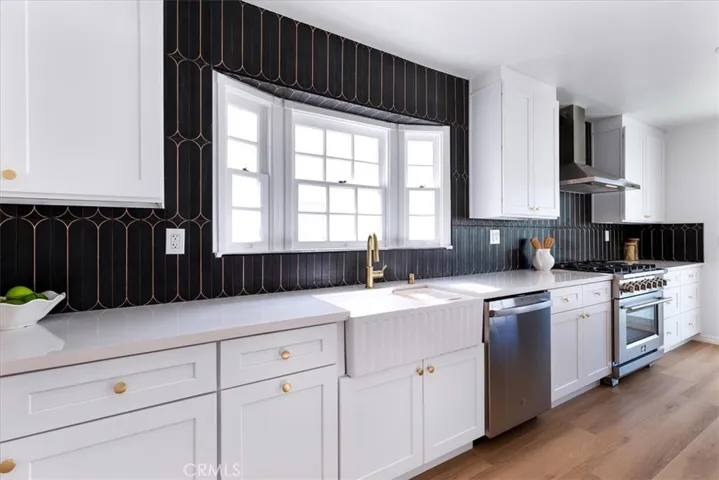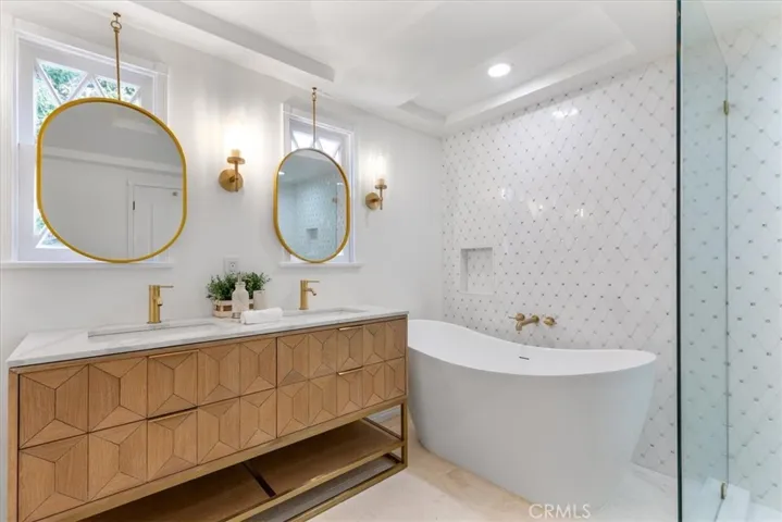 Nestled in the heart of historic Leimert Park, where leafy, tree-lined streets and iconic architecture evoke the timeless elegance of Los Angeles’ golden era, this masterfully reimagined 3-bedroom, 2-bathroom residence is the perfect blend of classic charm and modern sophistication. Set on a generous 6,000-square-foot lot, the home is a rare study in balance honoring its original character while delivering a truly elevated, contemporary living experience., Beautifully new laminate wood floors warm every room, showcasing the home’s inviting soul. This property is a celebration of craftsmanship, with hand-selected finishes and custom millwork that reflect care, quality, and intention. Original wood windows bathe the interiors in natural light, while upgraded interior and exterior doors create a seamless, refreshed flow throughout. Expansive archways open sight lines and enhance connection between the living, dining, and chef’s kitchen spaces. The kitchen is a showstopper: new wood cabinetry, hardware, and exquisite designer countertops and backsplash anchor the space with timeless luxury.. Each bathroom has been thoughtfully redesigned for both style and comfort. The primary suite features a newly configured bath with custom tile work through out and antique brass finishes. The downstairs hallway bath complete the ensemble, with cohesive, high-end fixtures in matte black and antique brass tones. Safety features include smoke and carbon monoxide detectors for added security. Step outside to find meticulously landscaped grounds designed for both relaxation and entertaining. Fresh sod, lush new plantings, and decomposed granite pathways invite you to linger around the fire pit. Even the garage received a facelift with a new door and refreshed stucco for a crisp, polished look. The remodel was completed with permits. Added touches like new wooden gates at the driveway and side yard offer both convenience and peace of mind. Blending timeless character with modern upgrades, this home is a truly rare offering in one of Los Angeles’ most vibrant, culturally rich, and connected neighborhoods. Minutes from West Adams, USC Village, the Expo and Crenshaw Metro lines, and with easy access to LAX, Downtown LA, and Culver City. Enjoy some of LA’s best local spots just moments away.