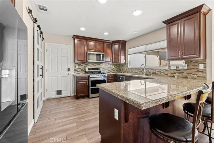 **NO HOA – PAID OFF SOLAR – SALT WATER POOL** Beautifully improved single-story home located in a quiet Victorville neighborhood. Offering 4 bedrooms, 2 bathrooms, and 1,829 sq ft of living space, this residence blends modern updates with comfortable everyday living—all on one convenient level. Step inside to a bright and inviting layout where the living room features new wall accents that add character and warmth. The home has been thoughtfully updated throughout, starting with a brand-new HVAC system installed in August 2025, ensuring year-round comfort. The fourth bedroom was added professionally (non-permitted), providing extra flexibility for guests, an office, or a hobby room. Both bathrooms have been upgraded with walk-in showers, creating a fresh, contemporary feel. Storage is plentiful with added closet cabinetry and a custom hallway wall built specifically to increase storage options—ideal for organization and convenience. The garage received a complete makeover, transitioning from exposed boards to fully sealed walls, creating a cleaner and more functional space for parking, storage, or projects. Step outside to your private retreat where the backyard has been newly cemented, offering a low-maintenance space with room to customize—perfect for a garden, dog area, or outdoor lounge. An additional storage shed provides even more space, and the sparkling pool becomes the centerpiece for summer relaxation and entertaining. Located near schools, shopping, dining, and commuter routes, this upgraded home delivers comfort, practicality, and the ultimate California lifestyle.