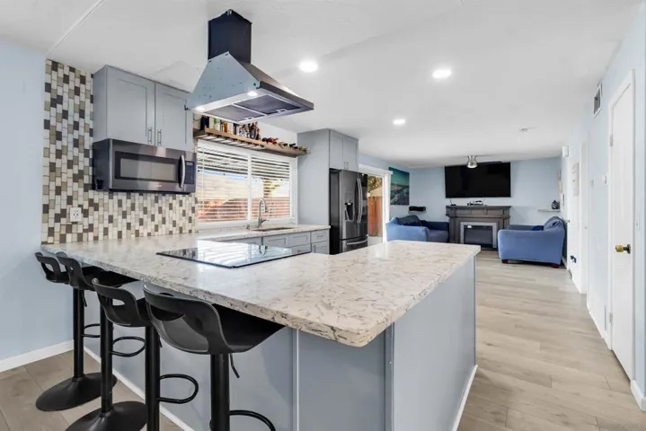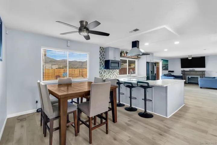 Welcome to this spacious, beautifully updated home located on a corner lot in the heart of Spring Valley. This inviting residence features an open-concept layout with a bright, modern kitchen offering upgraded cabinetry, sleek countertops, a large island with bar seating, stylish backsplash, and stainless steel appliances. The kitchen flows seamlessly into the dining and living areas, highlighted by recessed lighting, contemporary fixtures, and a cozy fireplace—perfect for gatherings and everyday comfort. Upstairs, you’ll find well-sized bedrooms with abundant natural light and updated ceiling fans, creating a relaxing retreat for every member of the household. Step outside to your private backyard oasis, complete with a sparkling pool, slide, and ample patio space ideal for entertaining, barbecuing, or enjoying sunny Southern California days. The property also includes a detached bonus structure—perfect for a home office, gym, studio, or additional recreational space. Additional features include solar panels, attractive low-maintenance turf in the front yard, and a two-car garage. Conveniently located near schools, parks, shopping, and easy freeway access, this home offers exceptional value and year-round enjoyment.
