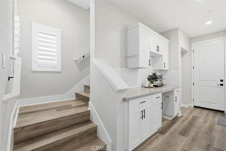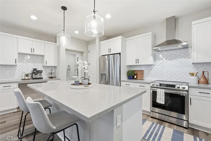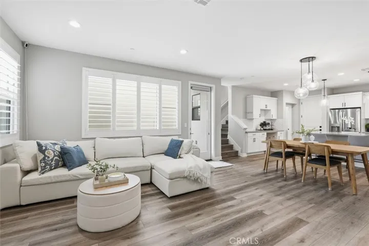 Rare opportunity in Rosecrans Place—an upgraded 2022-built townhome that lives more like a single-family home. Set deeper in the community for added privacy, this residence offers 2,405 sq ft across three levels with a modern layout and extensive enhancements. The gated community includes an upgraded call box, Amazon lockers, plentiful guest parking, and HOA-included high-speed internet. The first floor features an open-concept living area with 9′ ceilings and direct access to front and rear yards. The kitchen offers a huge island, quartz countertops, subway tile backsplash, induction cooktop, stainless steel appliances, pull-out cabinetry, a farmhouse sink, and a touch-sensor faucet. LVP flooring, recessed lighting, and hidden cable management complete the space. Upstairs, the primary suite includes custom his-and-hers California Closets. Three additional bedrooms share an oversized hall bathroom with dual sinks and upgraded tile to the ceiling. A full laundry room with cabinetry and a sink adds convenience.