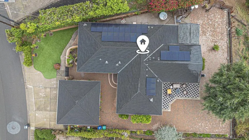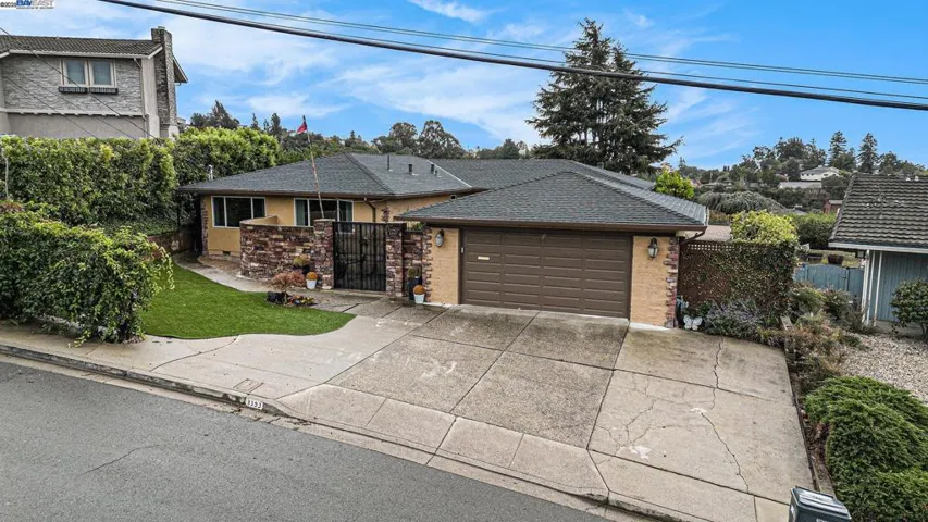 Welcome to this beautifully upgraded and expanded 3-bedroom, 3-bath Woodland Estates home, set on a generous 12,900 sq. ft. lot with approximately 2,200 sq. ft. of living space. This is a rare opportunity to own a property offering breathtaking panoramic views of the Bay, San Francisco, and the Bay Bridge. The open-concept floor plan is ideal for entertaining and features a gourmet kitchen with double refrigerator, high-end 48” stainless gas range, granite countertops, walk-in pantry, and stylish custom cabinetry. The spacious living area boasts vaulted open-beam ceilings and a decorative electric fireplace that adds warmth and character. The luxurious primary suite includes a walk-in closet and a beautifully appointed private bathroom. A second master bedroom provides added flexibility, while the third bedroom offers abundant natural light. A separate laundry room adds convenience. Energy-efficient upgrades include an owned 26-panel solar system. The detached, oversized 2-car garage features overhead storage and an electric car charger. Outdoors, you’ll find a synthetic front lawn and a low-maintenance backyard with pavers—perfect for gatherings while enjoying the afternoon sunset. Located in Woodland Estates, nestled among the oak trees and canyons of the Hayward Hills.