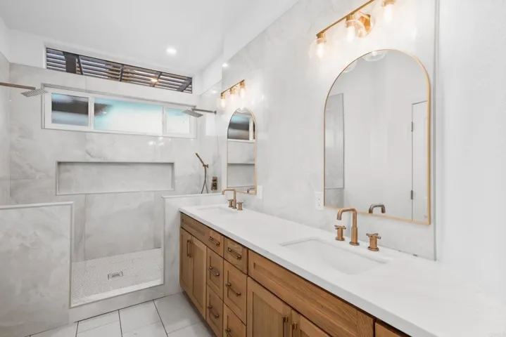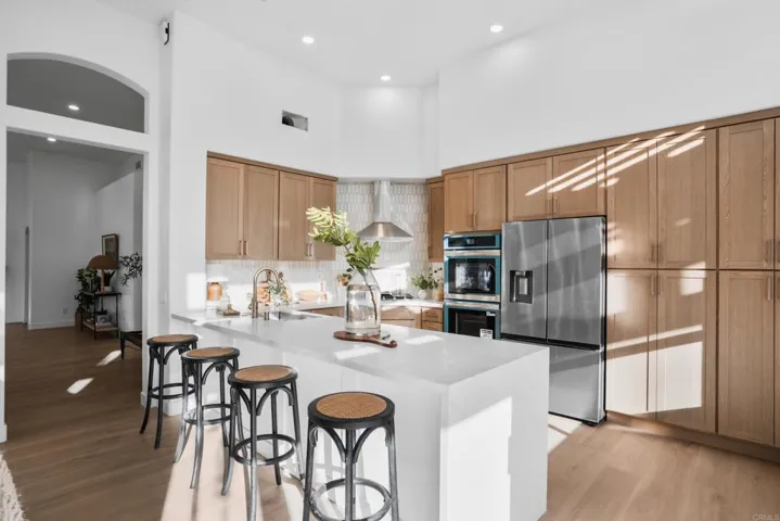 Welcome to this extraordinary, fully renovated single-level showstopper with a 350 square foot pool house, 3-car garage and sweeping sunset and hillside views at 866 Windridge Circle. This single-level home, built in 1994, is perched at the top of Windridge Circle in Chancellor’s Crest — one of Discovery Hills’ most exclusive enclaves. Offering privacy, oversized lots, and timeless community charm, this one-owner residence is a rare find. Step inside and discover over 2,000 square feet of beautifully reimagined living space. With four bedrooms and two full baths, the home’s gorgeous primary suite captures sweeping hillside and sunset views. High ceilings, abundant windows, and open living areas create a bright, airy atmosphere. Recent upgrades include new luxury vinyl plank flooring, fresh interior and exterior paint, modern lighting, and spa-inspired remodeled bathrooms. The chef’s kitchen is a true showpiece — oak shaker cabinetry, quartz countertops, a designer backsplash, and premium appliances combine to create a culinary haven perfect for entertaining or everyday living. Let nature surround you in your private backyard oasis which is nothing short of breathtaking. A resurfaced pool with a tranquil waterfall, powered by new equipment, sets the stage for relaxation. The 350-square-foot pool house is a showstopper in itself — featuring expansive glass bi-fold doors that seamlessly connect indoor and outdoor spaces, a renovated bar, lounge area with a 65-inch TV, and endless potential as an ADU. Evenings are unforgettable around the built-in firepit with seating, framed by peaceful southwesterly sunset views. With no HOA, newer vinyl fencing, and top-rated schools including California State University San Marcos, this home delivers both lifestyle and convenience. You’re minutes from Discovery Lake trails, Lake San Marcos amenities, shopping, freeways, and just 20 minutes to the beach. 866 Windridge Circle — a true showstopper where modern upgrades meet timeless tranquility. Make this your dream home.