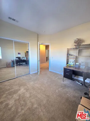 Stunning 5-bedroom, 4-bathroom, 2-story single-family home in the highly desirable Anaverde Community! Boasting 3,499 sq ft of living space on an 8,738 sq ft lot, this home features a thoughtfully designed floor plan with an open first level, perfect for entertaining and family living. The main floor includes a formal living/Dining room, spacious family room w/a recessed entertainment center and traditional paneled fireplace w/granite accents,1st-level bdrm and full bath, ideal for guests or multi-generational living. Add’l 1st-floor touches include eco-friendly bamboo flooring throughout & a built-in linen cabinet for added storage. Elegant, custom wood panel mouldings and arches, recessed lighting, and 2” white corded blinds add timeless style throughout the entire home. The gourmet kitchen boasts earth-tone granite countertops & backsplash, a large island w/bar seating, walk-in pantry, gas rangetop, wall oven & microwave, dishwasher, and a convenient built-in work desk. Upstairs, enjoy an expansive loft/bonus room, ideal for a 2nd living space, office, game room, or home theater. The stairway & upper level rooms offers plush cut-pile carpeting, mirrored closet doors in all non-primary bedrooms, ceramic tile bathroom flooring, and an en-suite bedroom w/private bath. The luxurious master features a sitting room, large walk-in closet, and a spa-inspired bathroom complete w/dual vanity sinks, a makeup station, an oversized tiled drop-in tub, and separate shower. The upstairs laundry room includes built-in cabinetry and utility sink. The 3-car tandem garage includes a workbench, closets, cabinetry, and a window w/blinds. Low-maintenance desert landscaping graces the front & backyard, which include a curved concrete patio and dog kennel, all secured w/ block wall and wrought iron fencing. Adjacent to the Palmdale Aqueduct, enjoy access to a 1/2-mile walking/running trail & panoramic valley views. Conveniently located near schools, freeway and a Park & Ride. This home will not last, schedule your showing to see inside this beautiful home.