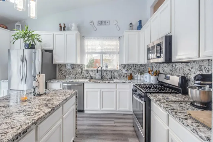 Welcome to this stunning, completely updated 4-bedroom, 2-bathroom home that perfectly blends modern comfort with timeless style. From the moment you enter, you’ll love the layout featuring a formal living room and dinning room, upgraded flooring, fresh paint and abundant natural light. The spacious living area flows seamlessly into a beautifully remodeled kitchen complete with stone countertops, stainless steel appliances, and ample cabinet space—ideal for everyday living and entertaining. The private primary suite offers a relaxing retreat with an updated bathroom and generous closet space. Three additional bedrooms provide flexibility for family, guests, a home office, or a playroom. Both bathrooms have been tastefully refreshed with contemporary finishes. Step outside to enjoy a low-maintenance backyard perfect for outdoor dining, gardening, or unwinding after a long day. Not to mention an abundance of fruit trees such as peaches, plums, pomegranates and lemons. New side gate with RV or boat access and solar(leased). Thoughtful upgrades throughout, and a convenient location near schools, parks, dining, shopping, and commuter routes, this home checks every box. Don’t miss your chance to own this beautifully updated gem—move-in ready and waiting for you!