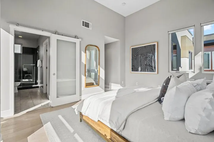 Lives like a single family home! This newer-construction townhome offers the privacy of a single-family home with no shared walls, direct street side entrance, an attached/enclosed two-car garage with extra storage and a private patio, all just blocks from the vibrant downtown. Natural light fills the home thanks to Southwest exposure and an open plan with tons of windows and high ceilings. Designed for luxurious living, the home includes two en-suite bedrooms, including an oversized primary bedroom with overheight ceilings and expansive views of the hills, and a third oversized bedroom for guests, an office, or both. A separate laundry room on the bedroom level adds to the convenience, and an enclosed patio right off the living room creates a seamless indoor/outdoor California living experience. Two additional balconies add to the outdoor experience and are the perfect spot to watch the sunsets over the hills. A rare opportunity for this unique property, just minutes to all of Silicon Valley!