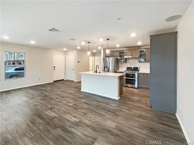 This home features fresh interior paint and a bright, open interior tied together with a timeless neutral color palette. The kitchen is equipped with a spacious center island and a refrigerator included with the lease, making meal prep a breeze. Relax in your primary suite with a walk-in closet, while the en-suite bathroom offers double sinks and plenty of under-sink storage to keep everything organized.