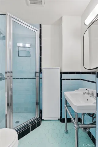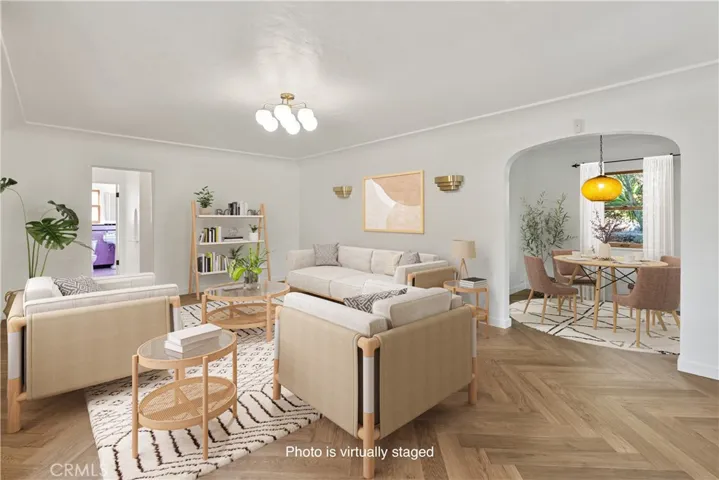 Step into a serene retreat in Silver Lake — a lovely Spanish-style home that balances vintage character with timeless comfort. Behind a fully fenced lot, the easy-care yard is dotted with citrus trees and succulents, providing a peaceful outdoor haven to relax in. The front door — painted a cheerful cerulean blue with original hardware — opens onto a home rich with enduring charm. Inside, a spacious living room offers plenty of room for relaxing or entertaining, framed by a picture window, elegant period light fixtures, and a graceful coved ceiling. Original hardwood floors and updated dual-pane wood windows flow through to a separate dining room adjacent to the vintage kitchen, which overlooks the garden. Down a central hallway, three bedrooms await, along with a full bath featuring original 1930s purple tile. One bedroom includes its own private ¾ bath for extra convenience. A detached garage with additional storage at street level adds practicality. Ideally located near Whole Foods 365, Silver Lake Wine, the Reservoir, and the Library — this home offers the perfect blend of comfort, character, and convenience.
