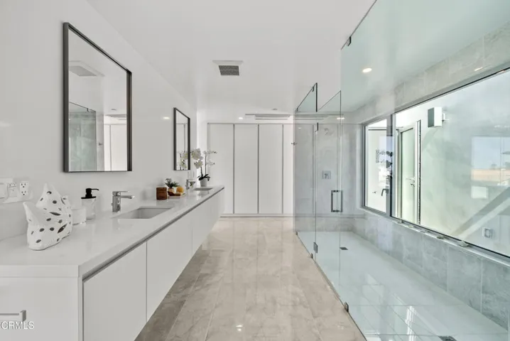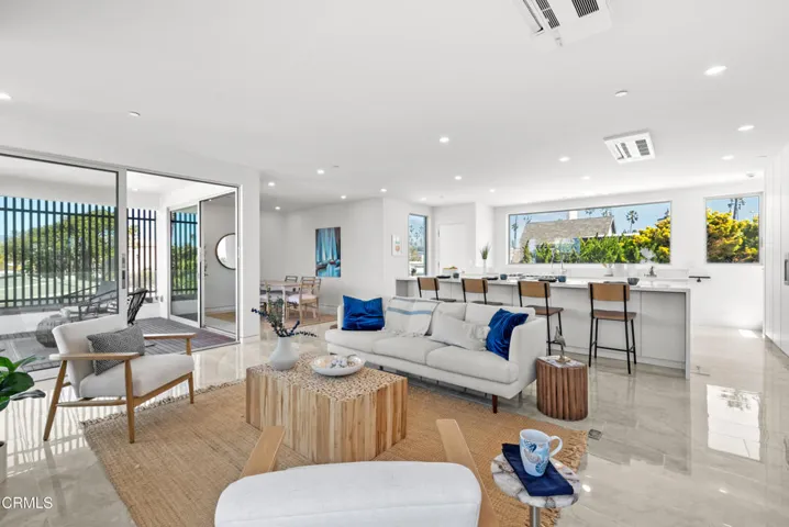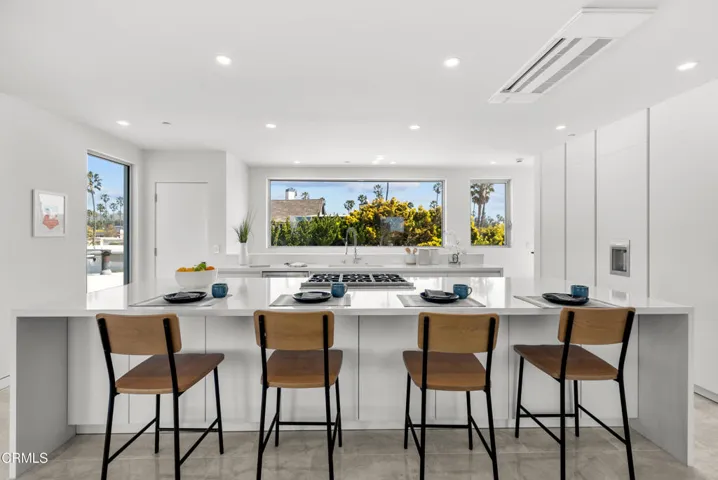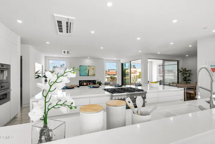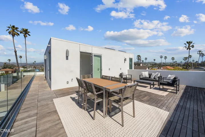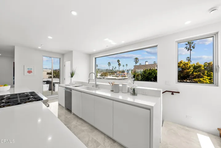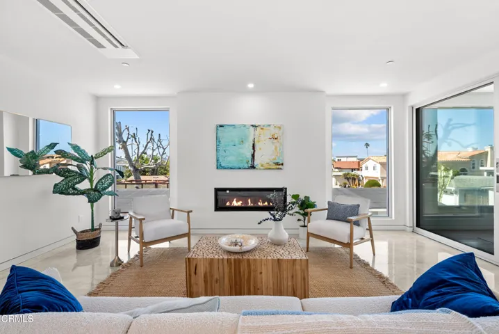 Coastal living at its finest in the prestigious Pierpont Beach Lanes. This 2024 custom-built tri-level home offers exceptional modern design, abundant natural light, and beautiful ocean, island, and mountain views–including a stunning rooftop deck perfect for taking in sunrise and sunset vistas.The first level features a spacious family room with a wet bar, polished stone floors, a guest bath, laundry room, and an en-suite bedroom with its own private entrance–ideal for guests, a home office, or gym.The second level showcases an open-concept living area with a fireplace and a chef’s kitchen equipped with Thermador appliances, a 6-burner stove, built-in coffee center, hidden refrigerator/freezer, walk-in pantry, and a 13′ island with seating. A covered balcony provides peek-a-boo ocean views, and two additional en-suite bedrooms, each with their own balcony.The third level is dedicated to the primary suite, featuring ocean views, a private deck, and a luxurious bathroom with a walk-in double shower overlooking an atrium, dual vanities, and separate water closets. Direct access leads to the rooftop deck for panoramic coastal living.Additional highlights include: upper rear deck plumbed for an outdoor kitchen, split-level air systems, solar panels, tankless water heater, generous storage, and a 2-car attached garage.Located just steps from the beach and Marina Park, and minutes to Downtown Ventura, Ventura Harbor, Oxnard Shores, shopping, dining, and freeway access. A rare opportunity to enjoy modern luxury by the sea in one of Ventura’s most sought-after beach communities.Luxury beach living at 1238 Devon Lane.