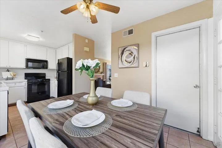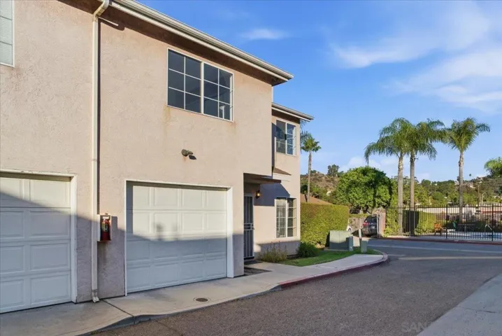 Tucked in the heart of El Cajon, this ideally located, quiet townhome offers the comfort and privacy of a single-family residence with its own private fenced backyard space. With only one shared wall, the light-filled interior welcomes you with a spacious living room anchored by a warm, inviting fireplace. The open-concept layout flows effortlessly into the dining area and well-designed kitchen, which maximizes functionality with abundant cabinetry and updated countertops. Upstairs, the generous primary suite impresses with soaring cathedral ceilings, abundant natural light, and a beautifully refreshed ensuite bath featuring a new vanity and modern flooring. Thoughtful updates include new plush carpeting, new central A/C, and an attached one-car garage with direct access to laundry hook-ups, plus an additional parking space. Residents of Mollison Park enjoy a sparkling pool, relaxing hot tub, and tranquil grassy areas perfect for picnics or outdoor play. With low HOA dues and exceptional walkability to schools, parks, local shops, and dining, this home combines comfort, convenience, and an enjoyable lifestyle.