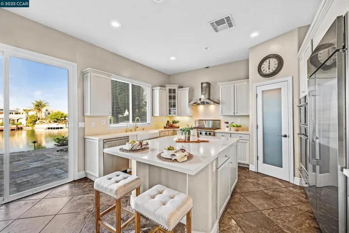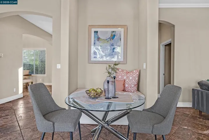 Gorgeous home in gated Brookside Country Club, backing to Spyglass Lake. Exquisite detail and finishes. 3 beds plus retreat/possible 4th bed or office (floorplan has a 4th bed/office option), 3.5 baths. Enter into a foyer w/ tile medallion, soaring ceilings. Formal living and dining rooms. Downstairs bedroom and full bath plus powder bath for guests. Kitchen open to breakfast nook, family room and backyard with stunning water views. Recently remodeled kitchen is a chefs dream with Quartz counters, island, high end stainless appliances, sleek cabinets. Wet Bar with wine refrigerator. Energy efficiency features include owned 2.5 KW solar system, Tesla charger,Tankless Water Heater, upgraded R-49 Attic Insulation. Large Balcony overlooking the lake from primary bedroom suite. Primary bath remodel includes soaking tub and walk in oversized marble shower. Built-in outdoor BBQ/gas burner for Al Fresco dining. Large backyard with stunning water view with steps leading down to a private boat dock. Finished 3 car tandem Garage with custom cabinets and Epoxy floors. Upgraded tile floors throughout, custom light fixtures, detailed tilework, hand plastered walls, fountain, TV’s in every room and lots more upgrades. Move-in ready. Nothing like this in Brookside CC. Beauty meets functionality!
