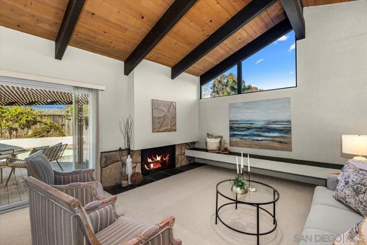 This exceptional 4-bedroom, 2.5-bath home is located in the highly sought-after Del Cerro community and sits on a generous lot backing to peaceful open space on one of the most coveted locations in the neighborhood. Inside, the spacious open-concept layout showcases soaring mid-century inspired tongue and groove ceilings, newer dual-pane windows, and expansive French sliders that provide a seamless connection to the private backyard. Step outside to enjoy a covered patio with Trex decking, a stunning pool surrounded by stylish brick pavers, and mature landscaping perfect for entertaining or relaxing summer days. Additional upgrades include newer kitchen appliances, slab countertops, and a newer roof. With convenient access to dining, shopping, parks, and top-rated schools, this home offers the very best of San Diego living. Don’t miss this incredible opportunity!