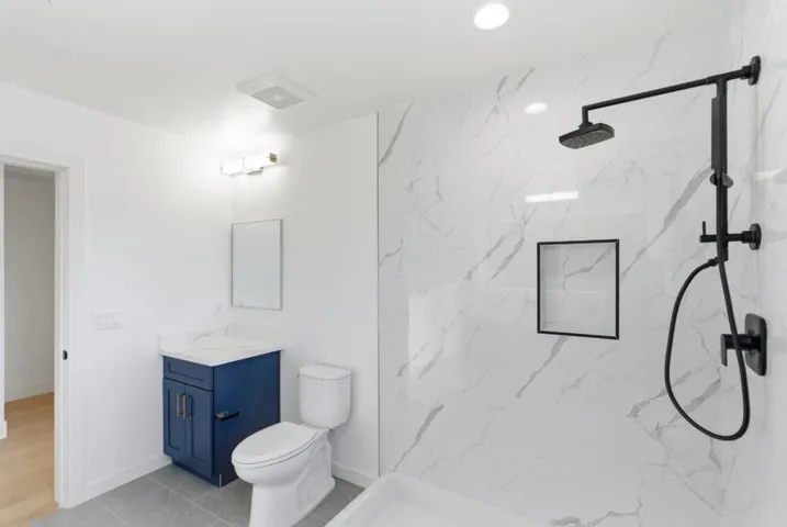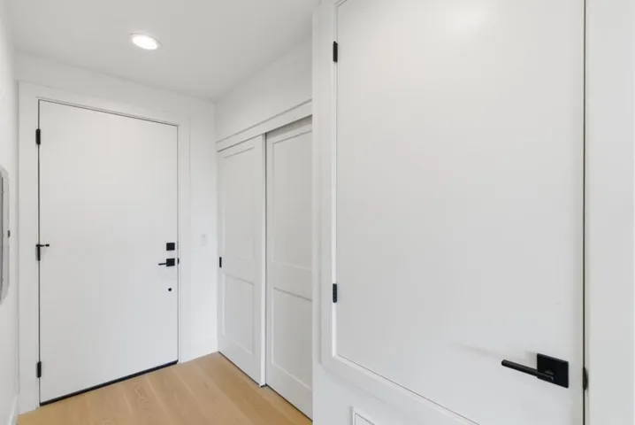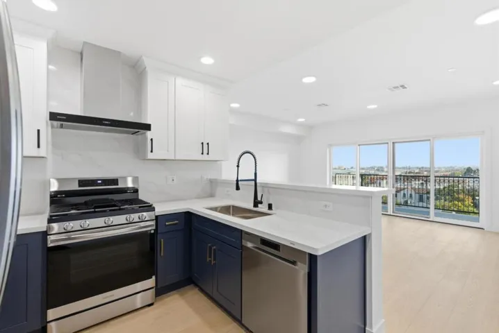 New construction condos. Steps to dining and transit. Elegant interior finishes. Secure garage parking. Discover this move-in-ready, newly constructed 2 bed, 2 bath condo in the heart of downtown San Carlos, spanning 1,265 sq ft. Choose from a variety of unique floor plans, each with a private balcony. The interior features elegant recessed lighting, engineered hardwood floors, and air conditioning and efficient heating for comfortable living. The gourmet kitchen is appointed with stylish quartz countertops and new high-quality appliances, including a gas stove and oven, refrigerator, dishwasher, and in-unit stacked washer and dryer. The spacious primary suite includes ample closet space and an ensuite bathroom with an adaptable shower, dual sink vanity, and LED mirror. Enjoy assigned parking in a securely gated garage with security cameras for added peace of mind. Proximity to Downtown San Carlos, San Carlos Caltrain Station, and San Carlos Public Library enhances convenience.
