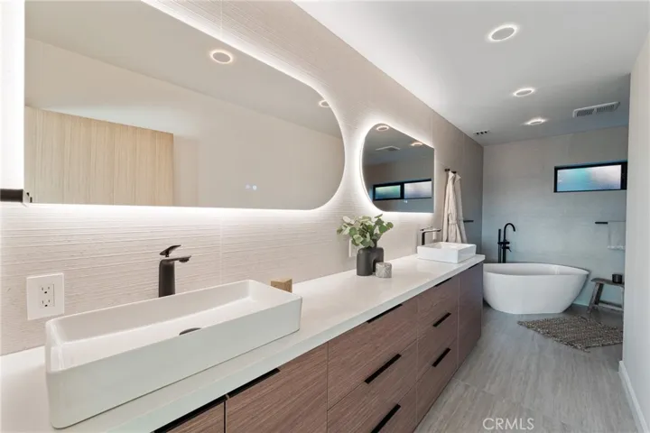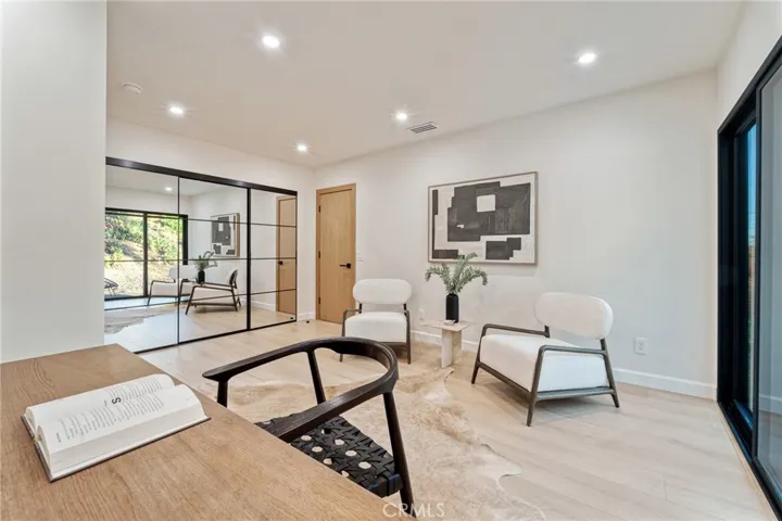 Views, Views, Views! Perched in Glendale’s coveted Adams Hill, 1117 Oberlin Drive is a 3,000 sqft fully reimagined organic modern home with spectacular views, timeless design, and refined craftsmanship. Flooded with natural light through the panoramic windows, the house features 3 large balconies with stunning views and offers a 220 sqft additional bonus recreation room with endless flexibility — gym, playroom, or home theatre. Ideally situated near Atwater Village, Silver Lake, and downtown Glendale, this home offers unbeatable access to some of L.A.’s most vibrant restaurants, bars, and entertainment hotspots—all just minutes away. The chef’s kitchen anchors the home with brand new stainless steel appliances, including a 48-inch double-oven range with 8 burners and griddle, a 47-inch refrigerator, a wine fridge, a dishwasher, and new custom cabinetry. The massive 12-foot island with waterfall stone finish offers abundant storage and seating, ideal for both everyday use and entertaining. A large formal dining room flows gracefully down to the living room, where high ceilings, a fireplace, and expansive windows frame panoramic views of Adams Hill. The living room opens to a spacious balcony, seamlessly blending indoor and outdoor living. The primary suite offers a fireplace, walk-in closet, and private balcony, with a spa-like bath featuring dual vanities, a soaking tub, and a walk-in shower. Two guest bedrooms capture stunning city views, one with direct access to a private patio and to the backyard through sliding doors, while a fourth en-suite bedroom provides perfect privacy for guests or a home office. Downstairs, the back door opens to a large entertainer’s deck surrounded by magnolia trees, privacy hedges, and lush native vegetation. A true retreat where design, comfort, and nature coexist in perfect harmony. Recent Enhancements & Structural Upgrades Include: Comprehensive foundation upgrades; smooth-finish stucco and seamless gutters; new bridge with concrete foundation, full plumbing repipe and new 1-inch main line with tankless water heater and sump pump; new 5-ton A/C system with ducts and custom grills; all-new electrical wiring and panel, new recessed lighting; newly framed bedroom, bath, and stairway; new windows and solid white-oak doors; new Trex deck and metal railings; waterproofed balconies with new tile; and new luxury looking epoxy-finished large garage (433 sqft) with high ceilings and new motorized door.