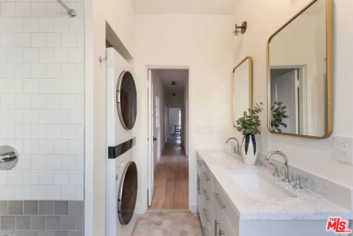 Discover the charm and grace of this thoughtfully renovated Spanish Colonial Revival, ideally situated on a light-filled corner lot. This 2-bed, 2-bath residence blends timeless character with modern comfort in all the right ways. From the moment you arrive, the architecture enchants with its warm stucco exterior, French doors leading to two private patios, one off the living room and the other off the dining room, and a hedged-in front yard that belongs exclusively to the unit, offering exceptional privacy and outdoor living. Inside, the sun-drenched layout is rich with historic detailing and generous scale. The living room flows into the dining room, while the kitchen features ample cabinetry, and a separate pantry/mud room that provides abundant storage and everyday functionality. Both bathrooms have been tastefully updated with finishes that elevate the space without overshadowing its heritage. System upgrades include HVAC, a new roof, and permitted updates to electrical, plumbing, and foundation providing peace of mind and lasting value. Secure parking is included, and the location in Faircrest Heights recognized as one of the “10 Best Districts You’ve Never Heard Of” by both Los Angeles Magazine and Business Insider offers historic architecture, vibrant community life, and central access to Beverly Hills, The Grove, Cedars-Sinai, La Cienega Park, and some of LA’s best dining and shopping. This is a rare opportunity to own a piece of Los Angeles history restored with intention and designed to inspire.