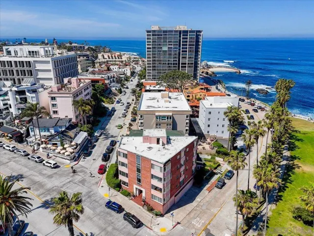 Spectacular location, in the heart of La Jolla Village, this perfectly situated, first floor condominium is just steps from renowned restaurants, boutique shops, world class art galleries and a multitude of coastal attractions. Stepping inside the architecturally unique, curvilinear entry way you are immediately greeted by the open concept living, dining, kitchen, great room with sliding doors that lead you to the common patio/garden space, surrounded by tall ficus trees for privacy. Living space features wall-to-wall picture window to enjoy your quintessential La Jolla coastal views, including the iconic La Valencia Hotel, and the classic palm tree lined Coast Walk that graces Ellen Browning Scripps Park, all of this plus views of the blue Pacific Ocean all the way up the coast past the bluffs of Blacks Beach. Large windows in each room let in the natural sunlight. Hardwood flooring in the main areas and carpet in the bedrooms. Kitchen features stainless appliances, dual corner sinks, electric stove, and spacious pantry. Stacked washer and dryer in unit. 2 mini-split systems for immediate cooling and heating, and an additional 3 ceiling fans. Don’t pass up this opportunity to be on a vacation 24/7, 365 days a year!