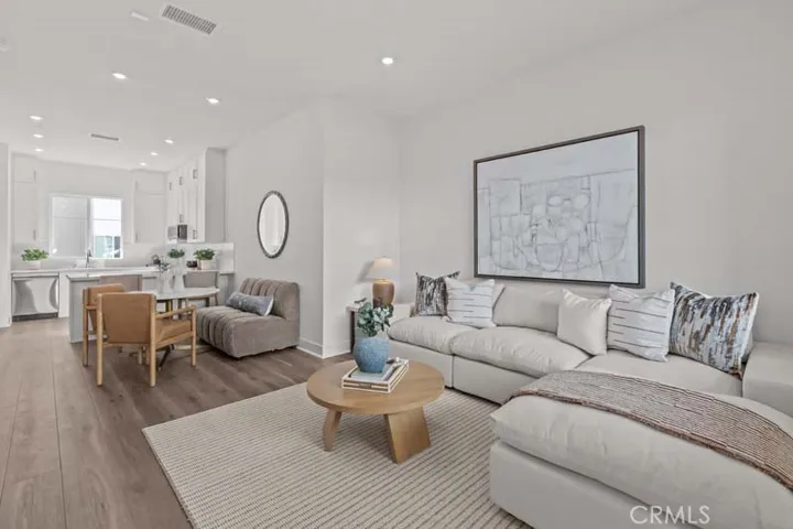 Welcome to Gage, a “hidden gem” community (NO MELLO ROOS) that’s also mere minutes from the coast, 405/22 commuter corridors, and walkable to a variety of shopping/dining/entertainment options (Bella Terra, Whole Foods, Costco, etc.). This turnkey home offers contemporary designer-curated interior finishes, including soft-close cabinets, LVP and tile flooring, and Quartz counter surfaces. Find expansive space at the second-floor living/kitchen area complemented by an outdoor deck, leading to a spacious Primary Suite opposite a secondary Bed with ensuite Bath once further upstairs. Modern exterior architecture, included washer/dryer/fridge, plus a deeper, 2 car attached garage with storage niche round out an ideal location that’s only steps to the community dog park and new pool/lounge area. MOVE IN READY, builder incentives available.