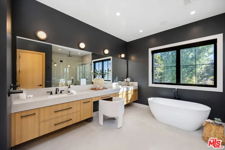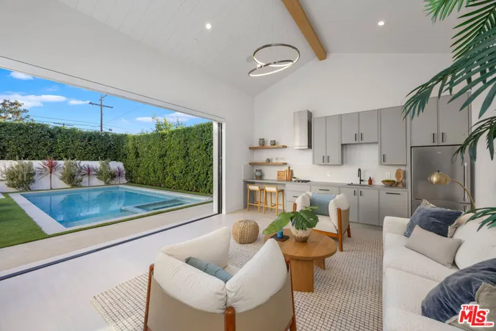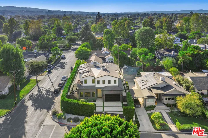 The grass is greener on this side! Welcome to the Modern Smart home with an ADU in the beautiful and serene pocket of Sherman Oaks, where you will love your neighbors and the daily tranquility of walking your pups, and babies. This high luxury, smart intergrated newer build, 2023 hosts 6 bedrooms, and 7 baths, with scenic Sunset views. An impeccably built, with great attention to detail, this Cape Cod Modern in one of Sherman Oaks’ most coveted neighborhoods. Set behind gates on a generous corner lot, this recently constructed estate spans approximately 4,200 square feet, per owners appraisal. The property blends stylish-yet-refined design with cutting-edge amenities, including a thoughtfully crafted accessory dwelling unit (ADU)perfect for guests, extended family, or a private studio space.Immediately upon arrival, the home impresses with its open-concept floor plan, bathed in natural light. The formal living room presents an elegant fireplace and opens to a covered patio with a firepit, ideal for morning coffee or sunset gatherings. The dining room is elevated by a custom wine display with accent lighting, adding a sense of sophistication and warmth.The heart of the home is the stunning chef’s kitchen, where no detail has been overlooked. Cambria quartz countertops, custom cabinetry, stainless-steel appliances, and a waterfall-edge island with integrated white oak breakfast table create a space as functional as it is beautiful. A large pantry offers additional storage, while the adjoining family room boasts a porcelain-clad fireplace, custom built-ins, and fleetwood style sliding doors that open to the backyard, creating a seamless indoor-outdoor flow. Venture outside into a private oasis featuring a sparkling pool and spa, an ADU with a kitchenette and bath, and a full outdoor kitchen with BBQ and bar seating, all framed by a low-maintenance turf lawn and brick accents. Ascend to the upstairs primary suite to find a true retreat, replete with soaring vaulted ceilings and exposed beams, an electric fireplace, and a private balcony. Its spa-inspired en-suite bathroom boasts exquisite tilework, dual vanities, a soaking tub, and a generous walk-in closet. What truly sets this home apart are its bespoke finishes and state-of-the-art systems throughout. From Control 4 smart home integration and surround sound speakers to custom woodwork and enhanced security with cameras and an alarm system, every detail has been thoughtfully curated for modern luxury living.Located moments from Sherman Oaks’s Westfield Fashion Square, Ventura Boulevard’s dining, and easy freeway access, www.5003MammothAve offers a unique blend of style, comfort, and convenience. Contact MJ for a showing.
