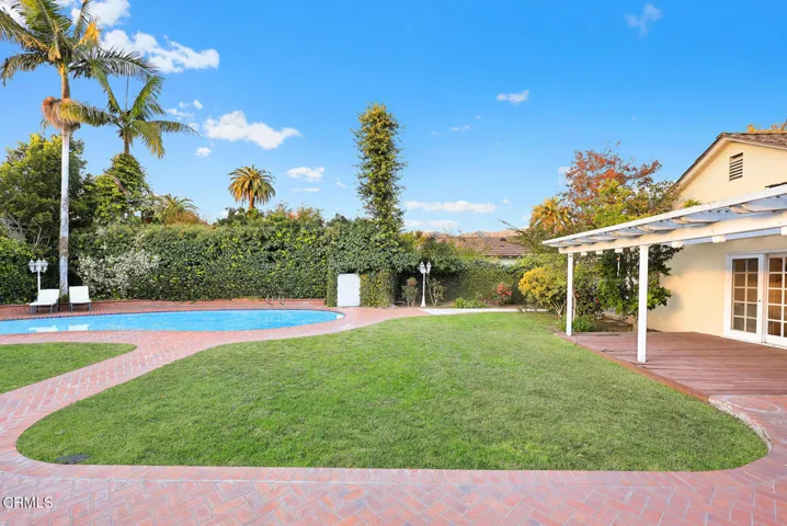 Welcome to 625 Chester Avenue, a rare one-level home located in a very prestigious neighborhood of San Marino, just moments from the iconic Huntington Library and Gardens. Set on a flat lot over 18,000 square feet, this expansive property offers the perfect blend of classic charm, lots of space, and endless potential. This gracious 5-bedroom, 3-bathroom home features open and generous living quarters, including a spacious primary suite, one bedroom on other side of the house with 3/4 bath, could be used as separate guest quarters,ideal for flexible use. A formal entry leads into a traditional living room with an impressive fireplace, recessed lighting, and beautiful hardwood floors. The heart of the home is the spacious family room, complete with soaring ceilings, skylights, a custom entertainment center, and French doors that open to a brick patio–ideal for indoor-outdoor living. The kitchen features granite countertops, Viking appliances, and a sunlit breakfast area with serene views of the manicured front garden. The centerpiece of the backyard has a sparkling pool, perfect for entertaining, relaxing or enjoying warm evenings. As a bonus, you will enjoy the view of the San Gabriel mountains. This home is a cosmetic fixer, offering incredible potential for those looking to customize, renovate, or invest in a solidly built property with great bones.
