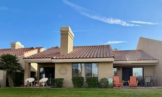 Beautifully updated 2-bedroom, 2-bath condo with den–perfect as a 3rd sleeping area–located in the heart of Palm Desert at The Resorter. This inviting home features a remodeled kitchen with granite countertops and new stainless-steel appliances. Both baths have been upgraded with granite surfaces and new shower stalls, and neutral carpeting flows throughout the living spaces. The living room offers plantation shutters, volume ceilings, and a cozy fireplace.Enjoy two private patios overlooking the 3rd tee box with fairway and mountain views–ideal for relaxing or entertaining. One parking stall is included in the attached 2-car garage.This seasonal rental is available for the 2025/2026 season and comes furnished with brand-new decor, making it the perfect turnkey getaway. Just bring your toothbrush, your racquet, and your clubs! The Resorter offers outstanding amenities: 20 pools and spas, an on-site clubhouse with restaurant and bar, pickleball and tennis courts, bocce ball, and 18 holes of golf with practice facilities. All within a guard-gated community close to shopping, dining, and everything Palm Desert has to offer.