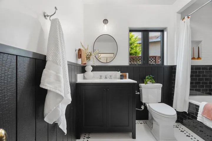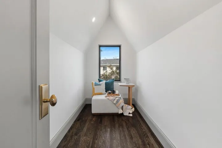 Meticulously modernized Tudor home on a 9,557 sq ft lot adjacent to Creeside Park and steps to the Stevens Creek Trail. This 2,439 sq ft residence offers 4 bedrooms and 3.5 bathrooms with genuine hardwood flooring, smooth plaster walls, wide baseboards, designer lighting, recessed lighting with dimmers, dual-zone climate control, central heating and cooling, and a durable metal roof. The formal living room features vaulted arched ceilings, gas fireplace, and oversized picture windows. The chefs kitchen includes quartz countertops, oversized island with seating, frameless soft-close cabinetry, Dacor refrigerator, BlueStar dual-oven range, custom plaster hood, pantry, breakfast nook, and under-cabinet lighting. Spacious formal dining area. The upper-level primary suite offers vaulted ceilings, custom built-ins, dual closets, seating area, and a spa-like bath. A second upstairs en-suite features a walk-in closet and soaking tub. Two additional ground-floor bedrooms, laundry between upstairs bedrooms, partial basement bonus space, powder room, and full bath complete the interior. Exterior highlights include a newly installed asphalt driveway, hedging with drip irrigation, and patio. Fully insulated detached two-car garage with heating, cooling, washer/dryer hookups, and RV hookups.