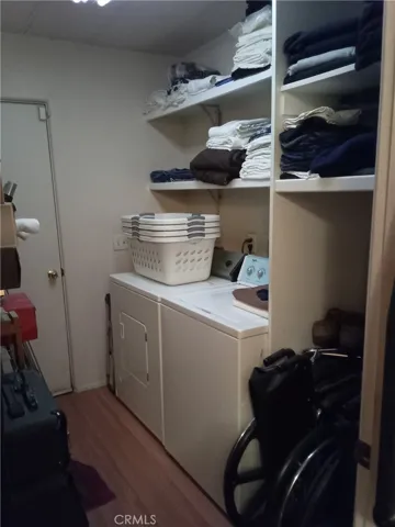 Welcome to AV Ranchos Mobile Home Park, This uniquely crafted 2 bedroom 2 bath home was renovated & improved by a master carpenter, as you walk up the Large 249SF. Covered deck (freshly sealed/ painted) inside you have Spanish-Style arched and round Textured walls! Roomy Kitchen with a dining area, Living room with a Pot-belly stove! Plus inside laundry room, Dual pane grid windows. also includes the matching storage Shed, since this is a corner lot the unit has no adjacent neighbors! Just drive right in your 2 car parking spots! Nice area, close to Schools, shopping and parks, and a low space rent*