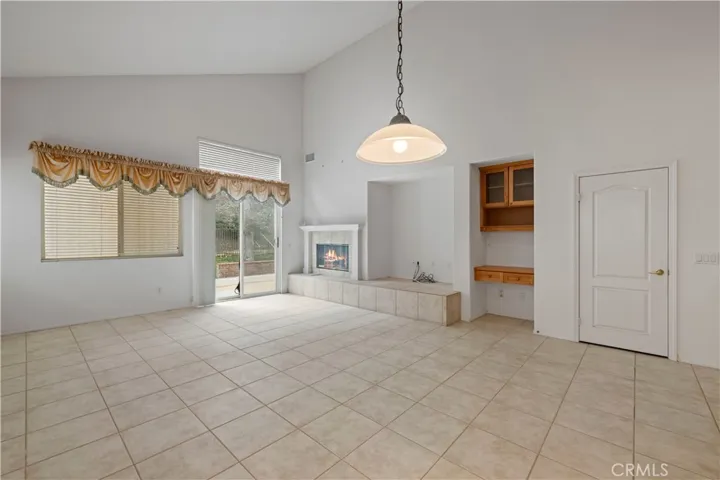 The popular floor plan features a combined living and dining room plus a separate family room with a cozy fireplace. The kitchen offers ample cabinet space and a walk-in pantry, and the adjacent laundry room with sink adds everyday convenience.