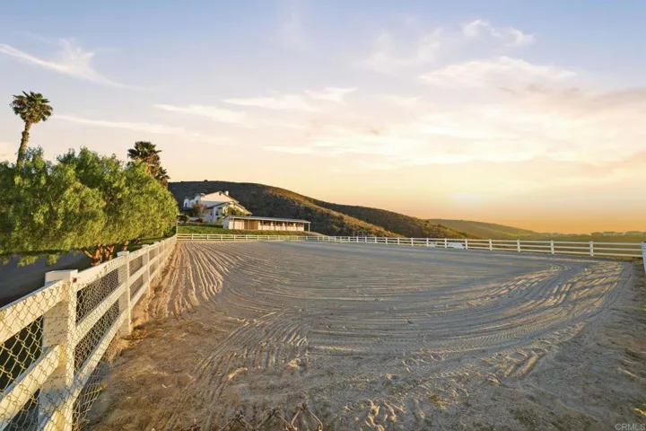 Robinhood Ranch: Premier 5-Acre Gated Equestrian Estate w/ Ocean Vistas & Owned Solar Discover “Robinhood Ranch,” a private 5-acre sanctuary. This premier gated estate pairs equestrian facilities with sweeping panoramic ocean views. Backing to conservation land, it ensures maximum peace, privacy, and direct trail access. Enjoy coastal breezes and breathtaking sunset views from the expansive wrap-around deck. The Residence: This beautifully designed 5-bed, 4-bath home features high ceilings, views from every room, and a 2-car attached garage. The main-level offers a primary suite with a bonus room and an ensuite bath. The chef’s kitchen boasts granite countertops, double oven, walk-in pantry, and a breakfast nook. A spacious dining room, living room, and main-floor laundry complete the first level. Upstairs includes 3 generous bedrooms, 2 baths (Jack & Jill/Ensuite), and a massive entertainment/bonus room with secondary laundry. Luxury & Flexibility: The property includes a versatile 36′ x 36′ detached building with an open floor plan, ½ bath, hot water, and a dedicated HVAC. It’s ideal for a shop, maker space or ADU (buyer to verify all permits). Both the main residence and the detached building feature new roofs and solar (8.6kW, NEM1). Enjoy quick access to a full spectrum of shopping, dining, and highways all within 5 miles. Equestrian Amenities & Unmatched Flexibility: Built for the discerning horse owner, the setup features a 4-stall barn with lighting, cross-ties, tack room, hay storage, double wash racks, and a separate feed room. Facilities include a professional 155′ x 95′ arena, a 60′ round pen, and a multi-acre pasture. Income Opportunity: The entire equestrian area can be repurposed for rental units, guest houses, or a substantial home-business facility (buyer to verify all permits). A rare opportunity: The perfect marriage of privacy, views, and equestrian living, all in one extraordinary property. Request a private tour today.