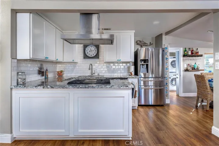 across Hwy. 1. The living, dining and kitchen areas show notable upgrades including granite counters, sinks, appliances, cabinetry and lighting. Heating is also a recent upgrade as are bathroom fixtures, W.D area and other details. The special primary suite opens to a creekside deck and yard. A single garage has a long driveway and generous storage adjacent. Don’t miss this unique offering.