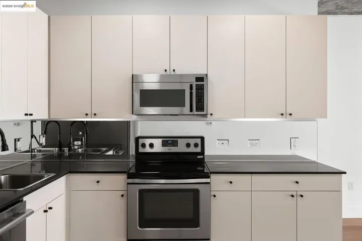 Luxury view loft condo, 8th floor, southern water views overlooking Jack London Square marina. Perfect downtown location. Updated 2025, sharp stainless-steel and stone kitchen, modern interior and high concrete ceiling. Floor-to-ceiling windows bathe the loft in light, plus peekaboo City views. Washer/dryer in unit, deeded garage parking and storage. The Sierra is a concierge building: 24-hr. front desk/security and package storage. You’ll enjoy the pool, sauna, BBQ, huge gym, and a celebration room w/ pool table. Get anywhere around the Bay Area using Amtrak, BART, the SF ferry, or freeways. Jack London Square is a foodie hotspot, and Brooklyn Basin isn’t far via the Estuary pathway. Even the free Oakland-Alameda Water Taxi! Best condo value and building in town.