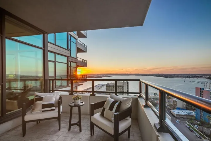 Where the Bay Meets Your Everyday. This 20th-floor corner residence delivers sweeping, unobstructed views of San Diego Bay, Point Loma, the harbor, and sparkling city lights through floor-to-ceiling glass. From regattas drifting across the water to vibrant evening sunsets, the panorama becomes part of your daily rhythm. The floor plan includes 2 bedrooms plus a den, offering flexibility for a home office, media room, or guest suite. The primary bedroom features dramatic bay views, a walk-in closet, and a spa-like bath. A second full bathroom and a large pantry add convenience. The open layout is designed for effortless living and entertaining, with hardwood floors and a modern fireplace that adds warmth and style. The kitchen is a standout featuring high-quality appliances and generous storage. Located in the heart of the Columbia District along “Millionaires’ Row,” The Grande offers resort-level amenities including 24-hour concierge, pool, spa, steam/sauna rooms, fitness center, guest suite, and secure parking. Step outside to Little Italy, the waterfront, Portside Pier, the Rady Shell, and some of the best dining and recreation Downtown has to offer.