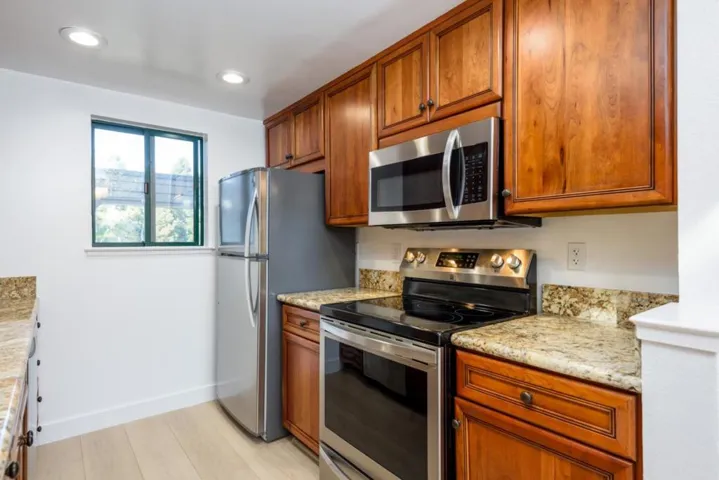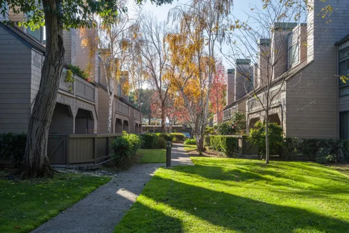 Welcome to a stunning top-floor unit in the highly sought-after Pelican Cove community of Redwood Shores. Surround yourself in the serene coastal ambiance of lagoons, greenbelts, and two community pools with spas. This spacious one-bedroom home features a large loft, perfect as a second bedroom, home office, or creative space. Soaring vaulted ceilings and expansive windows fill the home with natural light, creating an open and inviting atmosphere. Recently updated with zero-VOC paint throughout, eco-friendly laminate flooring and baseboards, LED light fixtures, and electric outlets. The bathroom has been tastefully renovated featuring an updated vanity, mirror, toilet and recessed lighting for a contemporary feel. Ample storage space includes an extended room off the loft that can be used as a closet or office space. The living room and bedroom both have private balconies, offering the perfect spot for peaceful relaxation after a long day or morning coffee. Served by national award-winning Belmont-Redwood Shores schools and conveniently located near shopping, dining and freeways.