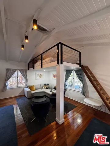 Stylish Silver Lake Rear Loft Home with Private Outdoor Spaces, Detached Office & EV Charger 2449 Riverside Place, offered furnished for lease set at the back of a duplex lot on a quiet cul-de-sac in one of Silver Lake’s most charming enclaves, this beautifully furnished loft residence offers a rare combination of privacy, creative flexibility, and lush outdoor living.Inside, vaulted open-beam ceilings and rich hardwood floors create a light-filled, airy ambiance. The living room is anchored by a spacious lounge area, seamlessly connected to a lofted sleeping space featuring a king-size Tuft & Needle mattress for the perfect night’s rest. The modern kitchen boasts sleek cabinetry, quartz countertops, stainless steel appliances, and a sunny breakfast nook with built-in desk space. A walk-in closet provides ample storage with both open shelving and enclosed wardrobe systems.The bathroom is fresh and bright with designer tile, a walk-in shower, and a window framing the garden beyond.Step outside and you’ll find multiple private spaces to relax or entertain: a landscaped backyard with lounge seating, a shady deck under mature trees, and a brick pathway leading to a detached office/studio perfect for remote work, art, or reading.The property backs directly onto the historic Corralitas Red Car Trail, where you’ll find a large parking pad with space for multiple vehicles and direct gated access into the backyard. A Level 1 EV charger is also included, making it convenient for electric vehicle owners. Located moments from Silver Lake’s best coffee shops, dining, and boutiques, with easy access to Griffith Park, the LA River bike path, and Downtown LA. Follow the directions on the attached link to arrive at the property. https://goo.gl/maps/Jeah9wUGZUTvxEYZ8