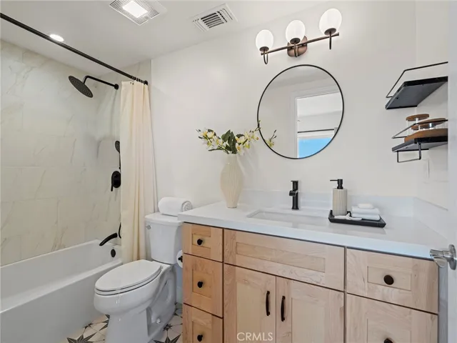 Remodeled, turnkey, and capturing breathtaking panoramic views, this exceptional residence offers a light-filled, open floorplan enhanced by newer light wood floors and thoughtfully updated finishes throughout. Expansive windows frame sweeping vistas of the Vincent Thomas Bridge, harbor, and the sparkling ocean—providing a stunning backdrop for both everyday living and elevated entertaining. The well-appointed kitchen is designed for both function and enjoyment, offering generous counter space and storage while allowing you to savor the views as you cook. A dedicated office area creates an ideal work-from-home environment, while a convenient half bath and a spacious laundry room with direct garage access add to the home’s overall ease and livability. The main level features a primary suite with separation from the other bedrooms, while the lower level offers a second primary suite with new bathroom and direct access to the pool—creating the feeling of a private Palm Springs-style oasis. Two additional well-sized bedrooms and updated bathroom complete the lower level, offering wonderful flexibility for guests or multigenerational living. Step outside to enjoy the serene pool and sun-drenched patio—perfect for relaxation and outdoor gatherings. Situated within the highly coveted Palos Verdes Unified School District, the home is just a short walk to Miraleste Intermediate School and Miraleste Early Learning Academy (MELA), close to the library, and offers convenient on/off The Hill access. A rare opportunity to own a beautifully remodeled view home in one of the Peninsula’s hidden gem locations—this is the one you’ve been waiting for!
