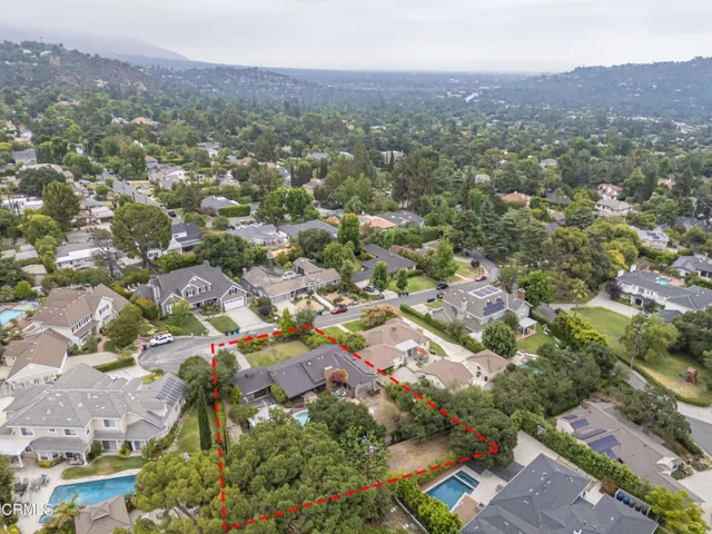 Location, Location, Location! This spacious ranch style home is situated on a highly desirable cul de sac location. Nestled on generous 16,302 SF lot, this La Canada gem offers an exceptional opportunity. The interior includes 3 bedrooms featuring a large primary suite and an additional junior primary suite with walk-in closet. A cozy living room with ornamental fireplace and recessed lighting is open to the dining area. This room offers includes a slider accessing the rear yard and excellent views of the sparkling pool. A recently updated kitchen with stainless steel appliances offers plentiful counter space and access to the cozy den which could also serve as an in-house office. The laundry room is ideally located off the kitchen and includes a powder room. The backyard has unlimited potential with its inground pool and adjacent cabana. This cabana with Murphy Bed creates a flexible space to be used as a guest room, studio, or private office. Additional land at the rear of the lot is ripe for your imagination! Other features include Central Heat/Air, Solar (on agreement), mostly copper plumbing, and tankless water heater. The 2 car garage includes plentiful cabinetry, rear door, and additional attic storage. Whether you’re looking to move right in and enjoy or planning your dream renovation, 5123 Caroli Lane delivers endless possibilities.
