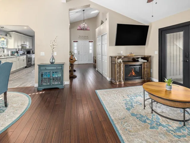 Come and see this beautifully fully remodeled home offering over 1400 sq. ft. of living space! This charming manufactured home features a two-car garage and a fully fenced backyard, and it truly shows like a model. From the moment you enter the wide hallway with cathedral ceilings and elegant lighting, you’ll feel right at home. The fully upgraded kitchen is both charming and functional, featuring soft-close cabinetry, custom slide-outs, stainless steel appliances, and a delightful breakfast nook. (refrigerator included)., and beautiful countertops. This home combines beauty with comfort—featuring engineered hardwood floors, remodeled bathrooms, ceiling fans in every room, and heating and air conditioning. Custom double doors from the living room and primary suite open onto a spacious patio where you can relax and enjoy your morning coffee. The backyard is fully fenced and perfect for gardening or outdoor fun activities. The spacious master bedroom includes a walk-in close! The community offers everything you could wish for: a clubhouse with a movie area and pool tables, a remodeled event kitchen, a refreshing pool with a kiddie pool and jacuzzi, a gym, playground, and available RV storage (subject to availability). This is a Family Park! Truly a home that checks every box! Come and see this beautifully fully remodeled home offering over 1,500 sq. ft. of living space! This charming manufactured home features a two-car garage and a fully fenced backyard, and it truly shows like a model. As you enter through the front door, you’re greeted by a wide, open hallway with cathedral ceilings and a stunning hanging light fixture. To your right is the completely remodeled kitchen, featuring soft-close cabinets, a custom spice rack, pantry slide-outs, and an abundance of storage for all your appliances. The kitchen includes all stainless steel appliances, including the refrigerator, and offers a cozy nook for a small table, while the adjacent dining area easily accommodates a larger dining set. The home has been tastefully decorated and features beautiful engineered hardwood flooring throughout. There are three bedrooms and two fully remodeled bathrooms with updated countertops. All bedrooms—and the living room—are equipped with ceiling fans for added comfort. The living room and master bedroom both feature custom double doors leading to the outdoor patio. The living room and master bedroom both feature custom double doors leading to the outdoor patio. The spacious master bedroom includes a walk-in closet, and the large patio is the perfect place to enjoy your morning coffee. The backyard offers plenty of space for gardening or outdoor activities. The property also features heating and air conditioning. The Community clubhouse offers fantastic amenities, including a movie-watching area, a pool table for fun with family and friends, and a large remodeled kitchen available to rent for parties and events (with deposits returned the same week). In the summer, enjoy the refreshing pool area, complete with a kiddie pool, jacuzzi, and ping-pong table. Additional amenities include a gym, a children’s playground, and RV storage (subject to availability)
